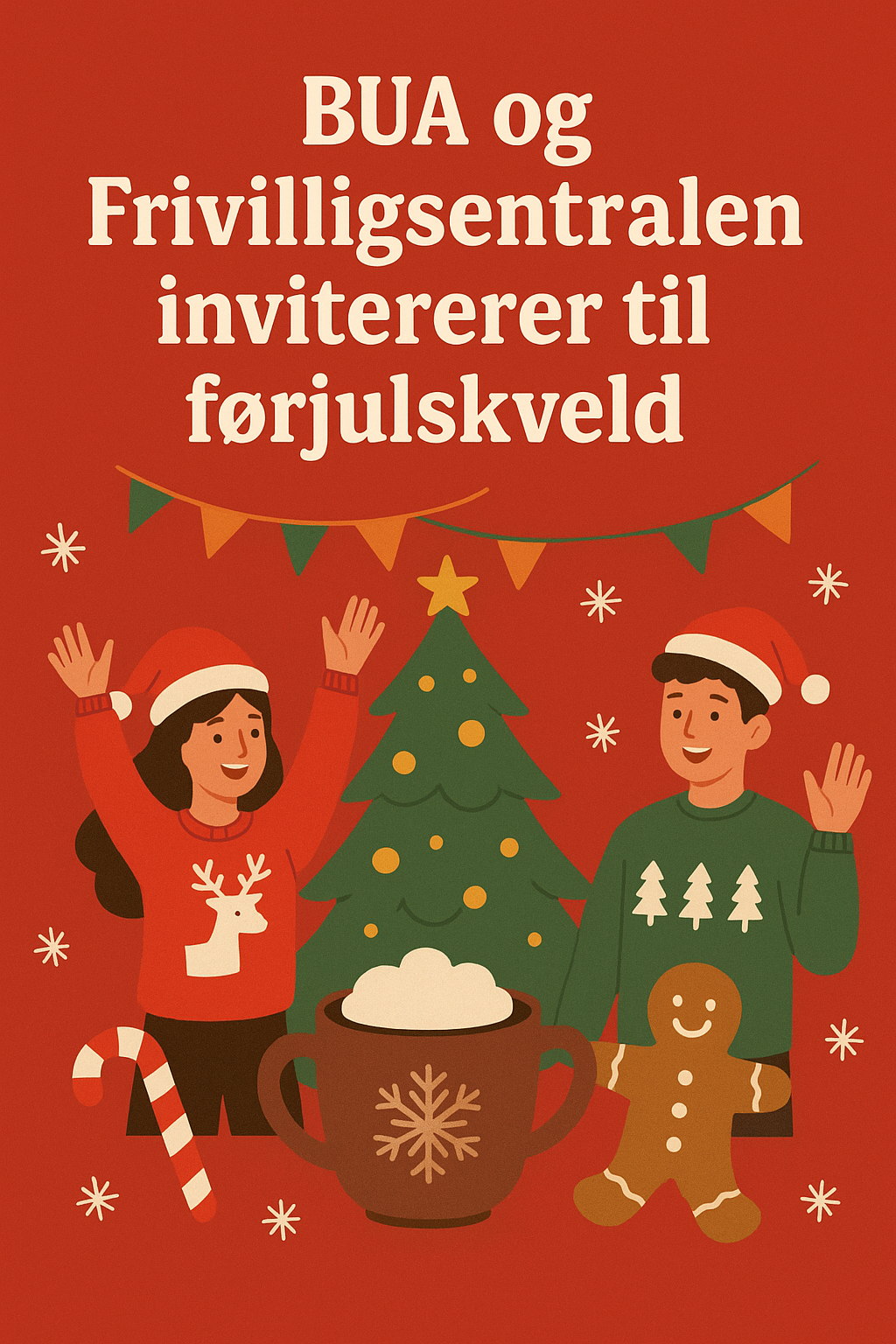 BUA og Frivilligsentralen inviterer små og store til ein triveleg førjulskveld onsdag 3. desember klokka 17, der både juleglede og fellesskap står i sentrum. Vi gjer klart til ei skikkeleg koseleg samling – og du er hjarteleg velkomen!