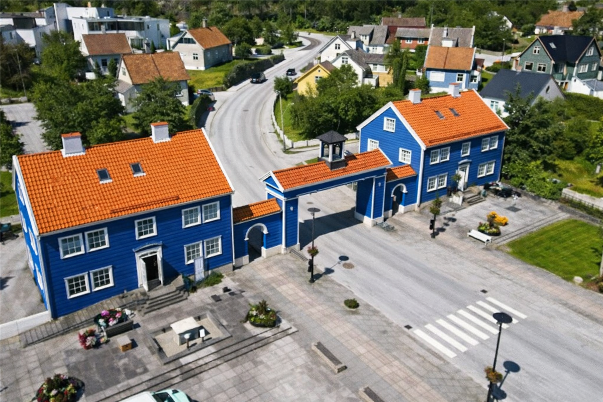 Studentar innan arkitektur og stadutvikling har dei siste månadane sett nærare på både bymiljøet og bygningsstrukturane i tettstaden. I samband med studiet vart det òg gjort søk i NACO-arkivet. Her fann ein originale teikningar og planar frå oppføringa, som viser at det den gong stod mellom blått og raudt fargeval.